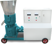 原料成品:是以玉米、豆粕、秸稈、草、稻殼等的粉碎物直接壓制顆粒的飼料機械。